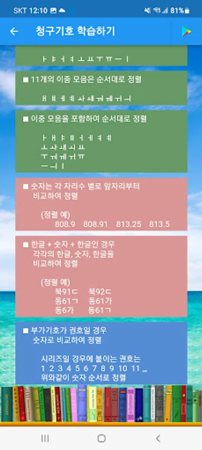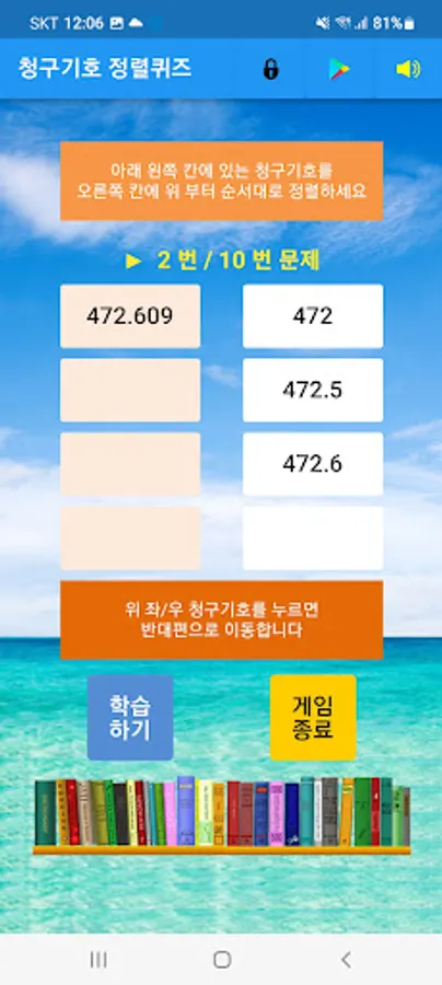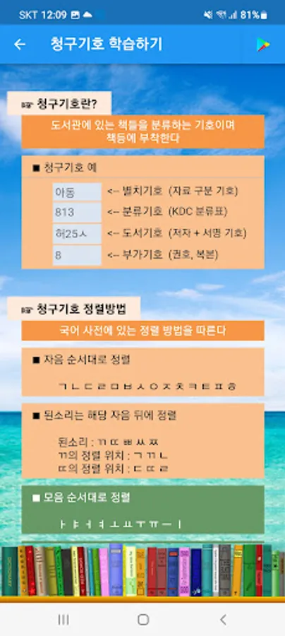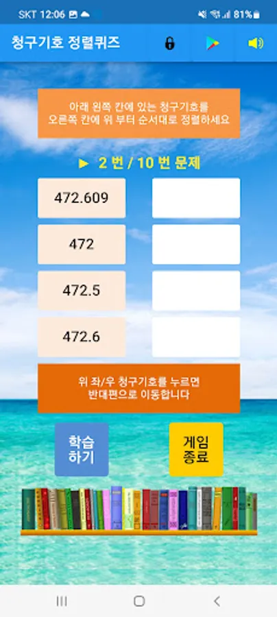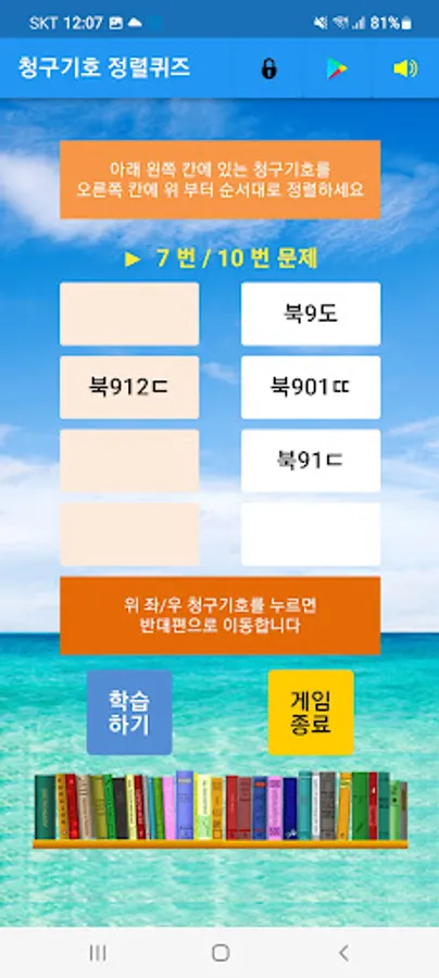The Call Sign Sorting Quiz helps you to easily learn the order of sorting books in the library through quizzes, incorrect answers, and learning functions.