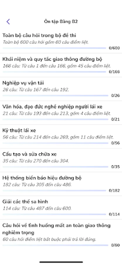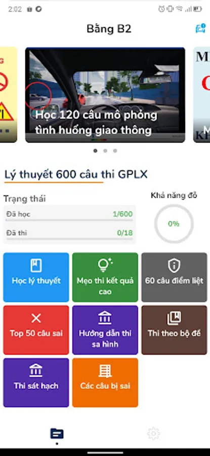 In 120 traffic simulation situations in learning to drive B1, B2, C, D, E compiled and developed by 120 questions of Driving License Exam Simulator based on real traffic situations of Vietnam. Based on the fact, the content structure of this simulation software includes: