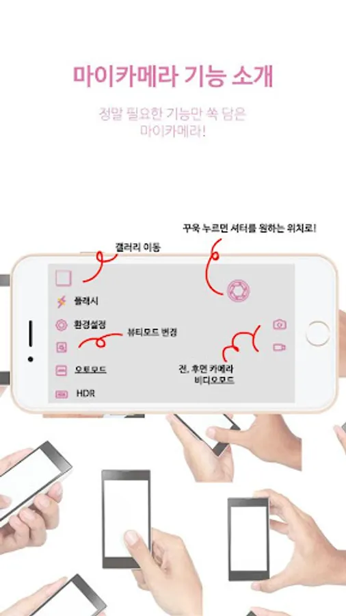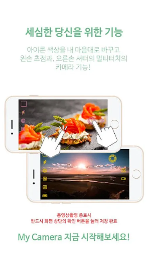 White, gold, pink, blue and green icons of various colors Turn the camera interface