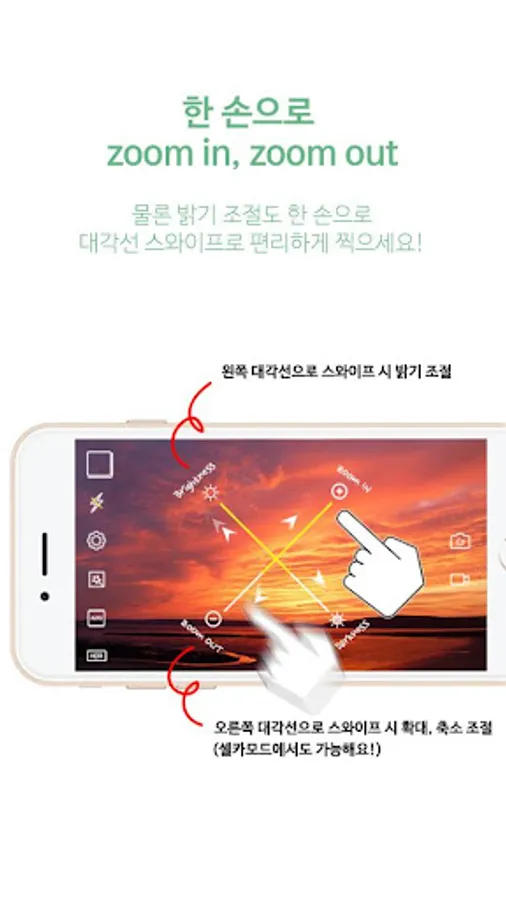 My camera is capable of zooming, and brightness adjustment with one hand