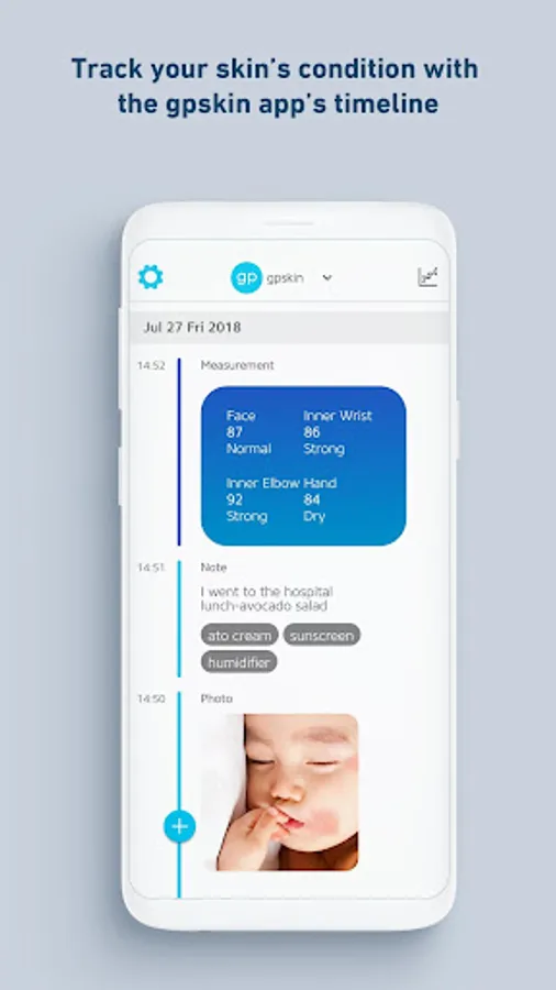 Smart skincare management for Eczema and sensitive skin- the gpskin App. Measure your skin barrier’s health and moisture levels with the gpskin Barrier skin measurement device. Manage your skin care routine and improve your skin health.