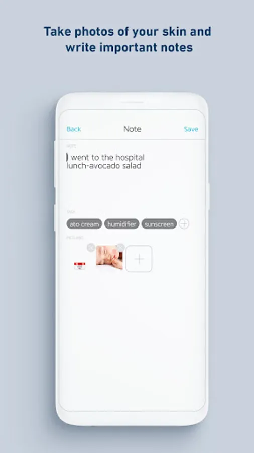 - Track which areas of the skin you’ve measured, potential skin allergens, and skin care