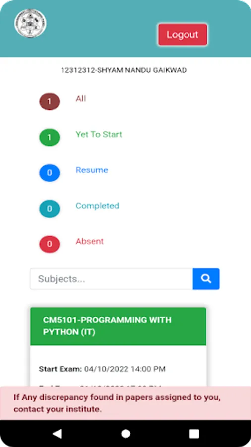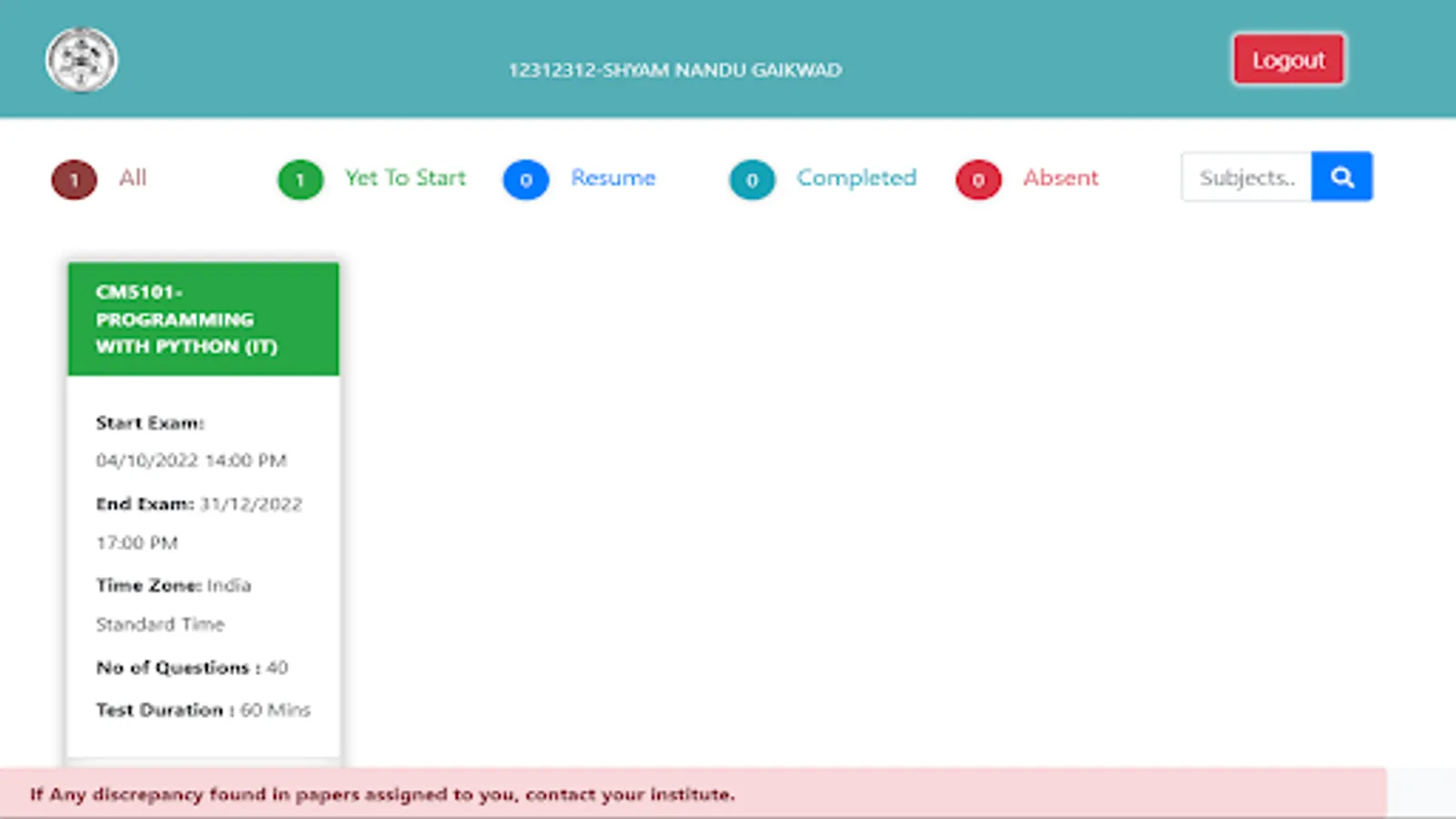 1.The examinee can see the list of all theory examinations he/she has to appear during Odd 22 examination in his/her login.