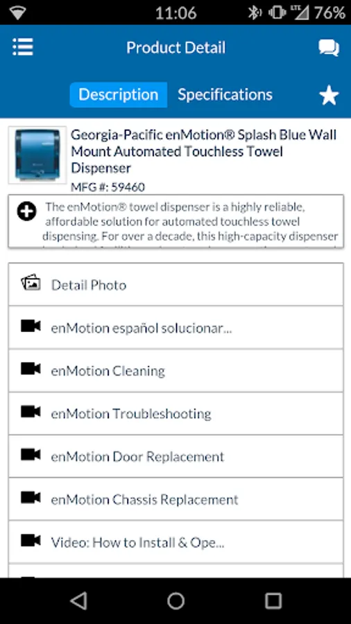 • Use the Product catalog to quickly search and share information with your customers before and after sales calls, including videos and custom branded sell sheets.