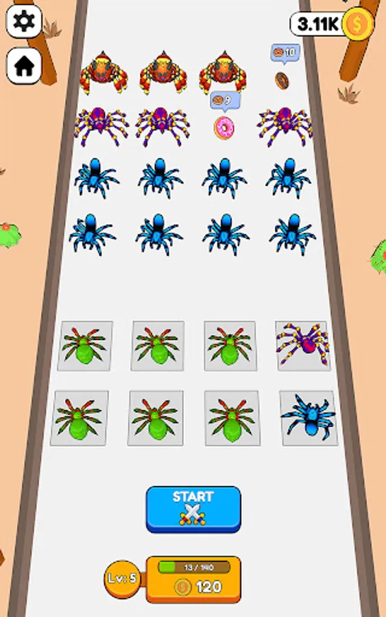 Merge insects and evolve to beat the level and upgrade your base to defend from enemy attack