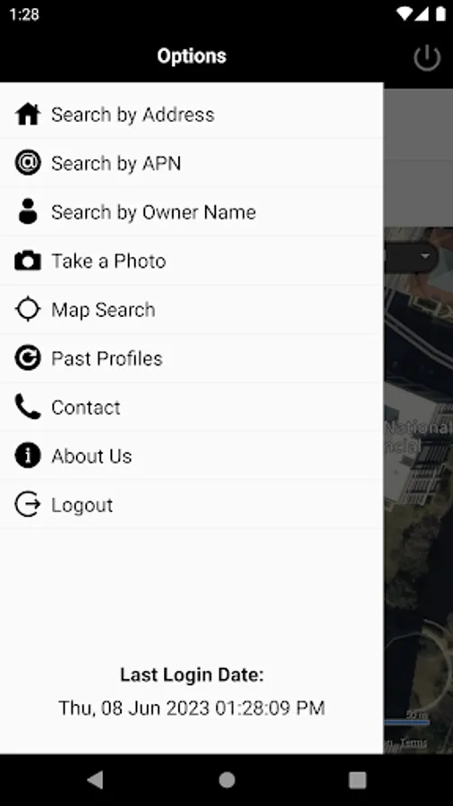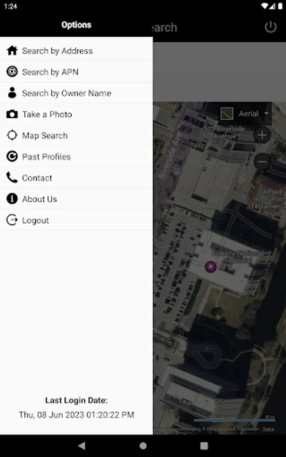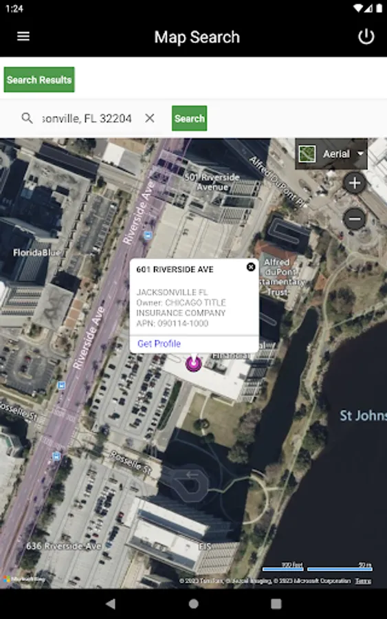 - Search by tapping on any identified parcel boundary on displayed map. Easily pan and zoom to any desired map location.