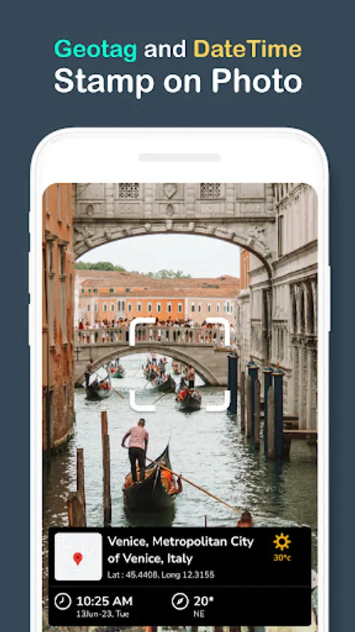 It’s very simple to use 📷 GPS Map Camera / Photo Stamp Camera app, when application start, GPS information including 📌 latitude, longitude, 🕒 time, 🌤️ weather and 🧭 compass will be displayed on the camera preview. Also you can choose different templates it will give you a beautiful look to the picture.