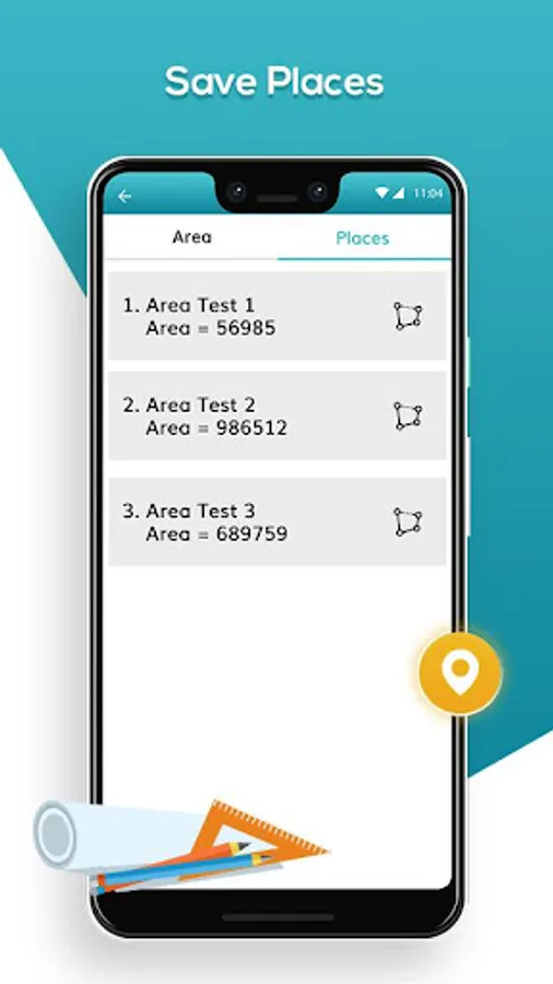 Save your calculated areas to the list for future reference, You can also save the location of your place. You can get the history of your saved spots at any time and can also delete the un used values.