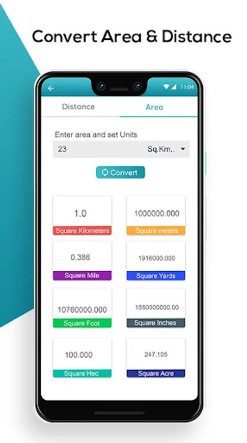 User can convert tha Area or Distance in to any Units, it provides the Converter in which you can get the values of your conversions with a single click.