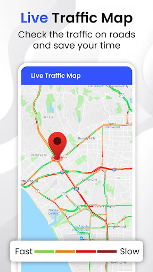 GPS Navigation Map Route Finder tells about the upcoming traffic track situation and also gives the alternate routes. This feature saves your time and informs you about the traffic on the map to choose a good path.