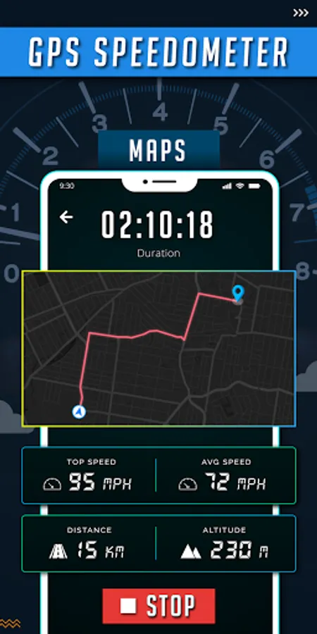 Fast, compact and efficient GPS Tracker calculates time, max and average speed of your car or bike in mph or kph. Get real-time GPS navigation with Speedometer app that tracks the current location and displays it on a map.