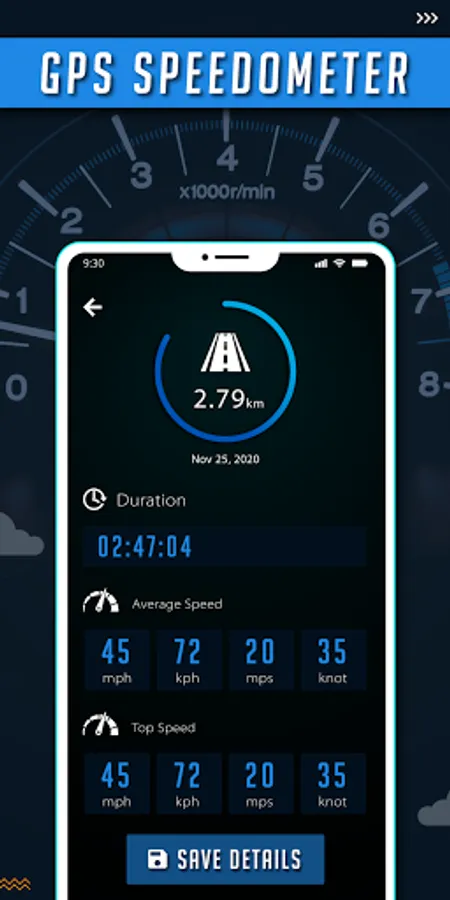 While you are driving GPS Speedometer tracks your speed. In order to keep you safe, car speedometer alerts you if you are crossing your set speed limit. It is amazingly simple and works universally with all vehicles including car, truck, pick-up, SUV, scooter, train, motorcycle, bike and boat.