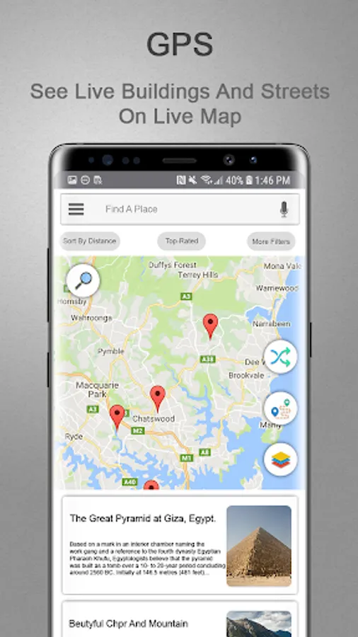 Are you hungry? Are you looking for any place to rest? Are you looking any workout place? Are you looking for bus station? Answer of all these and many more of your questions is in our app feature Nearby Places. You can find nearby Airports, Banks, Café, Restaurants, Hospital, Hotels, Gym, Pharmacy, Shopping Malls and many other places. Just click on your desired place and map navigator with route tracking will lead you there with the shortest way and telling the estimated time to reach there with real satellite navigation.