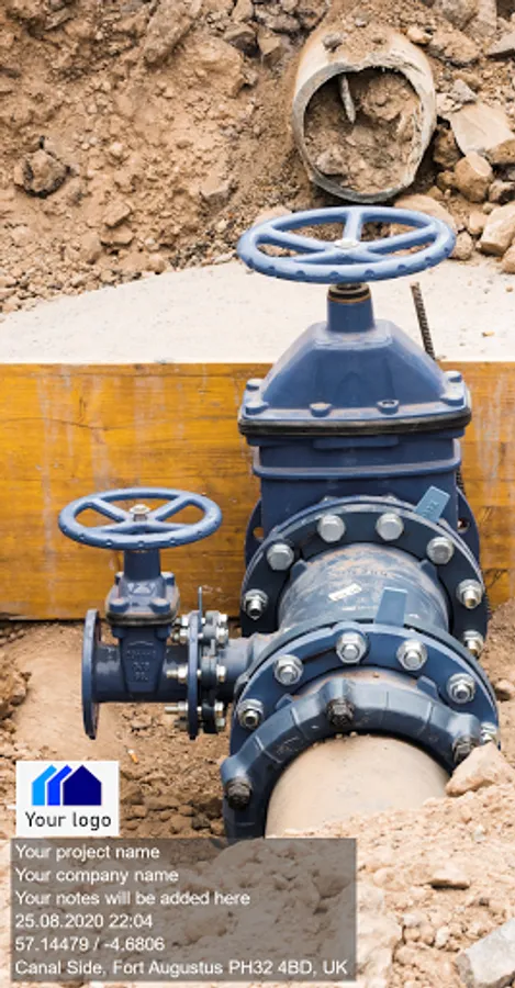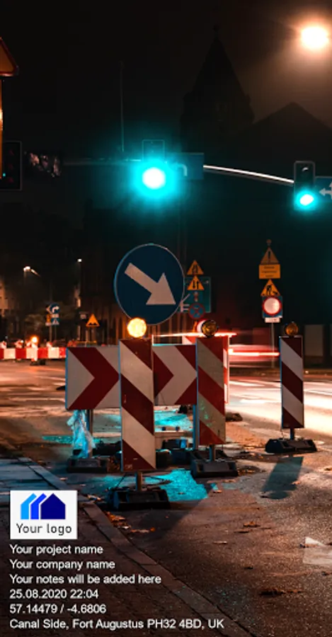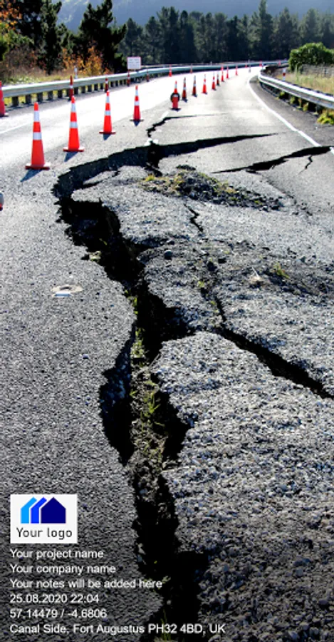 With Spotlens - GPS Camera & Timestamp Camera, you can add a project name, company name, notes and more information, for example a reference no. or chainage directly in the app while taking pictures.