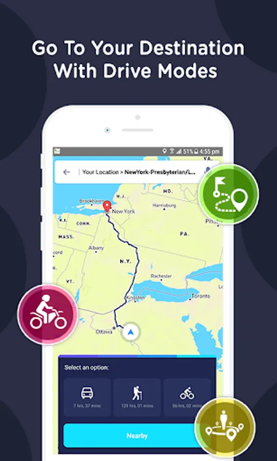 A free GPS app with new GPS Maps, GPS Voice Navigation Maps, Driving Directions application is the fastest and easiest to use, simply designed to navigate equipped with best live navigation, won’t find in other navigation apps. This GPS Maps App navigates and gets your current location, as direction guide it calculates distance or driving directions on maps with multiple routes options. With navigation with voice directions, you can find directions, transit, hotels and other then that you can also search for famous places, new navigation apps feature and make sure that you reach on time by use live navigation application if you are making plans. New free GPS app, GPS Voice Navigation Maps, Driving Directions application with direction guide option you can find directions to navigate properly and will update turn by turn and road by road and acts like a voice GPS route assistant.