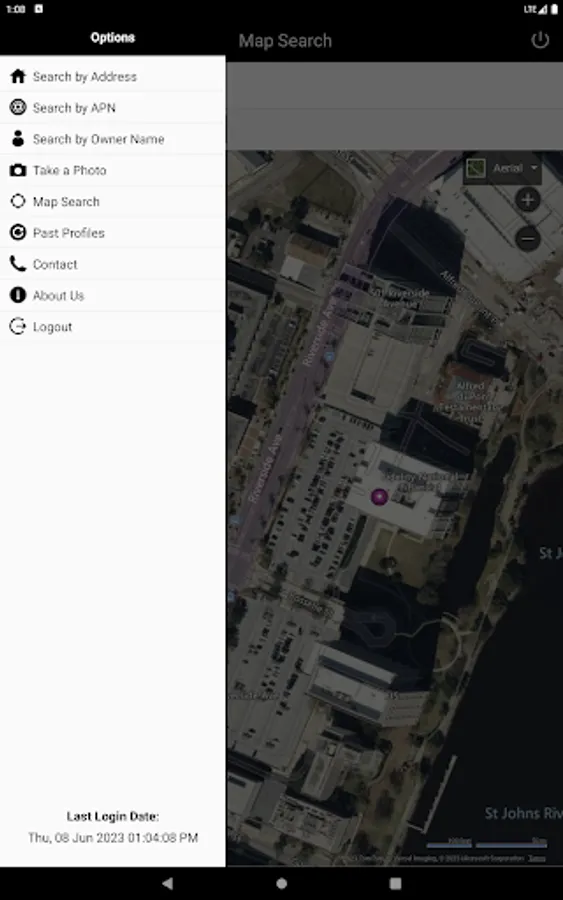 - Search by tapping on any identified parcel boundary on displayed map. Easily pan and zoom to any desired map location.