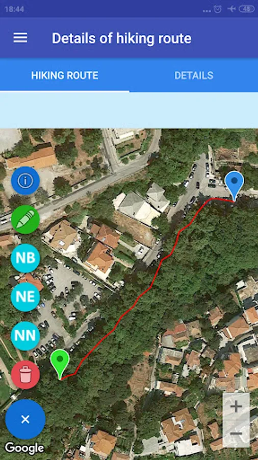 9. You can see all the hiking routes totally on the map as two markers connected by a line (the first in the beginning of the route and the last in the end) for each route. Click on a marker of a specific route to see the hiking information.
