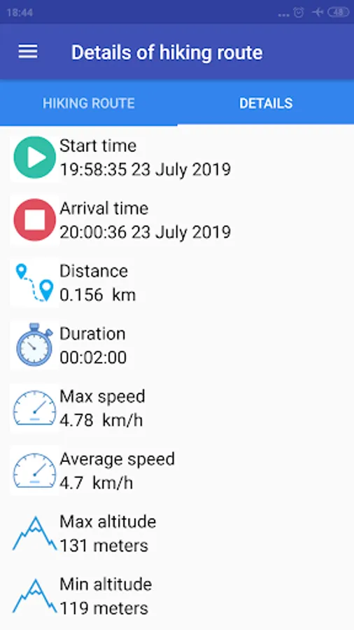 7. You can save and manage your hiking routes. The application let you record and plan your hiking routes (the title, the notes, the beginning longtitude and latitude, the end longtitude and latitude, the start time, the arrival time, the duration, the distance, the max speed, the average speed, the max altitude, the min altitude and the saved - updated date) and save them for the review and analysis. Moreover you can navigate from your current location to the beginning, to the end and to follow the hiking route.