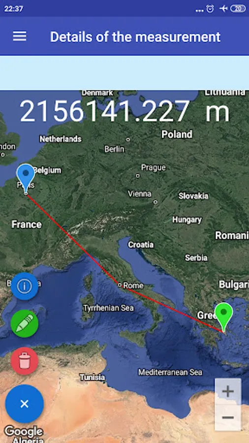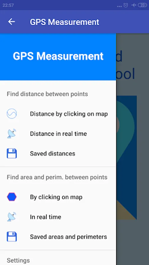 You can calculate the distance between two or more points by clicking on map or using GPS in real time by walking, driving, running etc. Also you can calculate the area and the perimeter of a field, a building, a forest area, your property or region, etc. by clicking on map or using GPS in real time by walking, driving, running etc. You can save the measurements and manage them. In the settings there are many choices to help you to adapt the application in your needs.