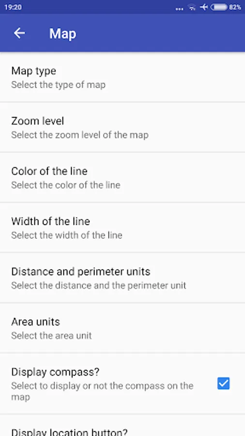 g) Select to display or not on the map the compass, the location button, the zoom level and the map toolbar.