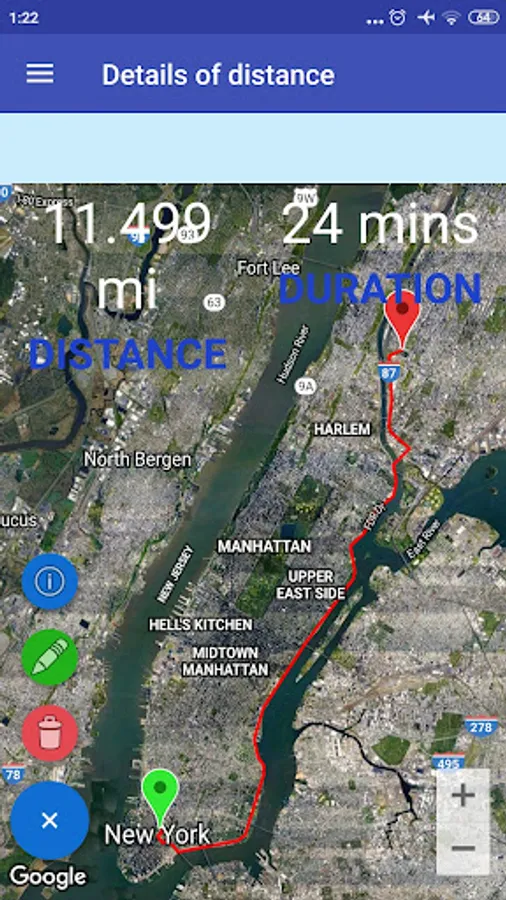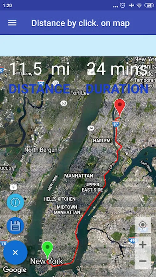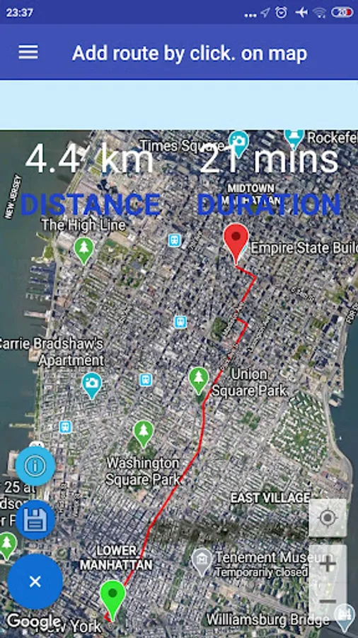 4. Find the distance for on-road and off-road routes using coordinates and by clicking on map. You can save and manage the distances.