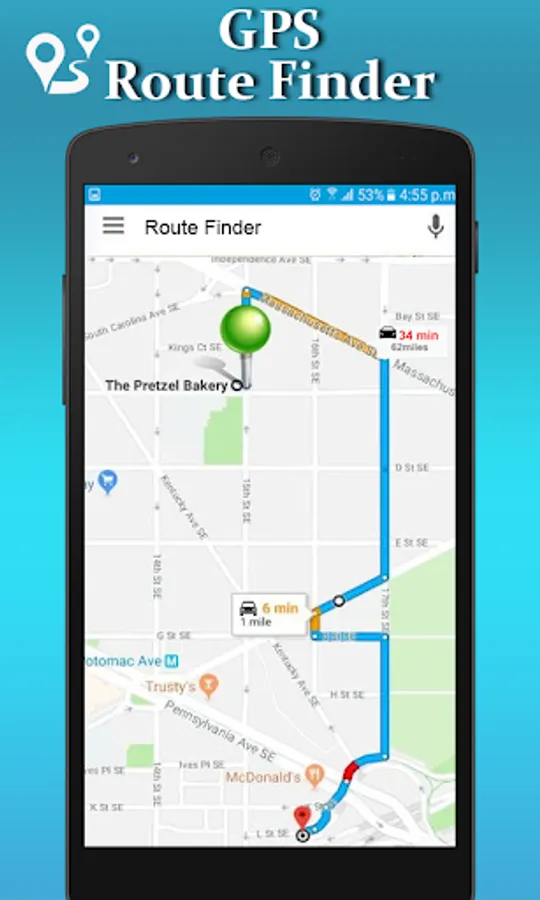 GPS area calculator provide you the facility to find route between two points on map. You can search your start point and destination point through voice as well. Select your points and just make a click on navigation icon and you’re able to find shortest route between two destination.