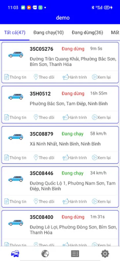 - Review the time, distance and vehicle location.