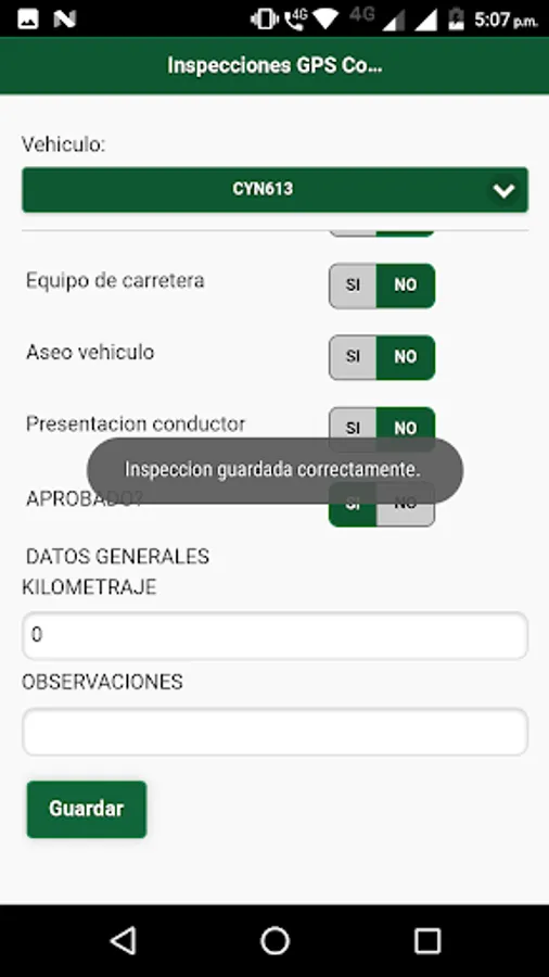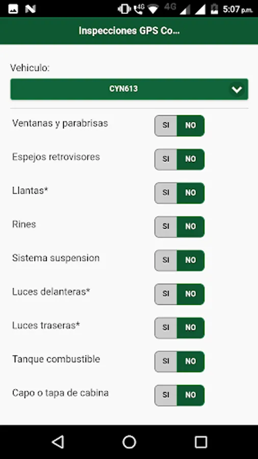 This application enables pre-operational vehicles monitored by GPS Control applications, these inspections will be displayed on the monitoring platform and serve to take control required by the Strategic Road Safety Plan (PESV)