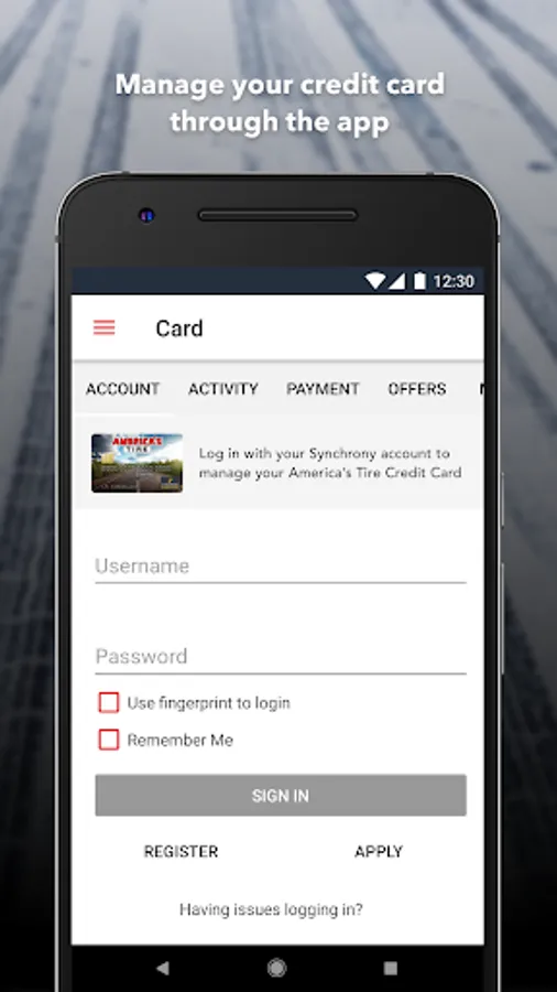 Financing is also available with our convenient America's Tire credit card. If you’re already a cardholder, paying your bill has never been easier than through the America's Tire app!