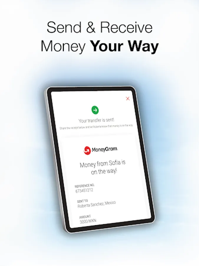 The MoneyGram® Money Transfers app will display available services based on your location. Not all services will be available in all countries. The app supports the same send and receive countries shown on our website, www.moneygram.com