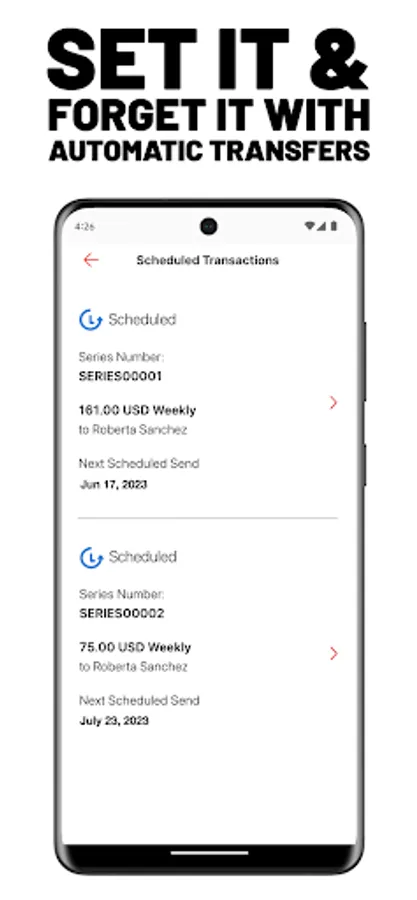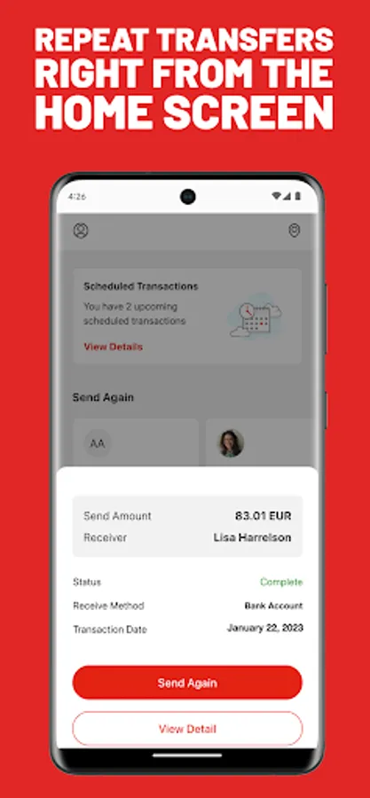 • Receive notifications and track the status of money transfers you’ve sent or are expecting to receive