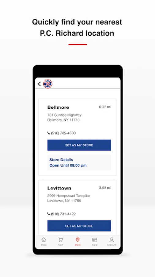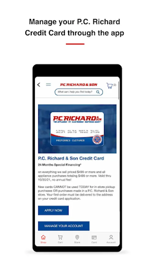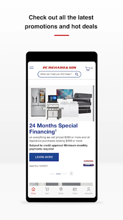 With the P.C. Richard & Son app, you'll be able to manage your P.C. Richard & Son credit card, discover the latest sales and promotions, shop our full collection of products, and learn more about your local showroom's store hours and directions - all in one place!