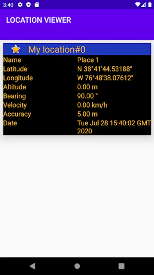 This new app helps you to easily find and store your current location. It displays basic information of like Latitude, Longitude, Altitude, Bearing, Velocity and Accuracy and additionally shows your current location on the map. Just by clicking anywhere on the map you can either store it in a location list or you can share your