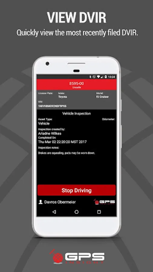 Quickly access vehicle information while on the go with the GPS Insight Driver app. As a driver for a GPS Insight-enabled vehicle, easily perform pre and post trip inspections, access your vehicle's DVIR, and sign into your vehicle all from the convenience of your Android device. The GPS Insight Driver app simplifies your non-driving activities so you can stay on the road longer.