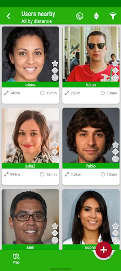 Stay anonym in your area or not. Meet new people at the beach, in the train or in the holidays. Ask the driver in a traffic jam how it looks ahead. Find somebody for eating together, or join somebody for a bike trip in the evening. Reality instead of virtuality.