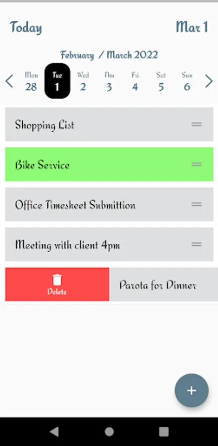 User can swipe right the task to delete or swipe left to mark completed ( Highlights the task with green color without deleting )
