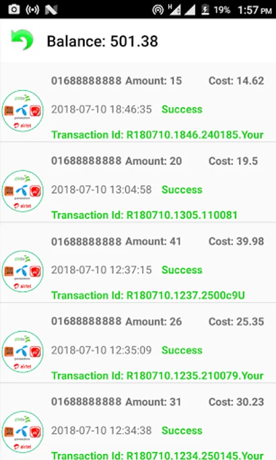• Quickly Repeat Your Last Top Up - Single touch "Repeat Top Up" option lets you send to the same phone number with the same amount instantly.