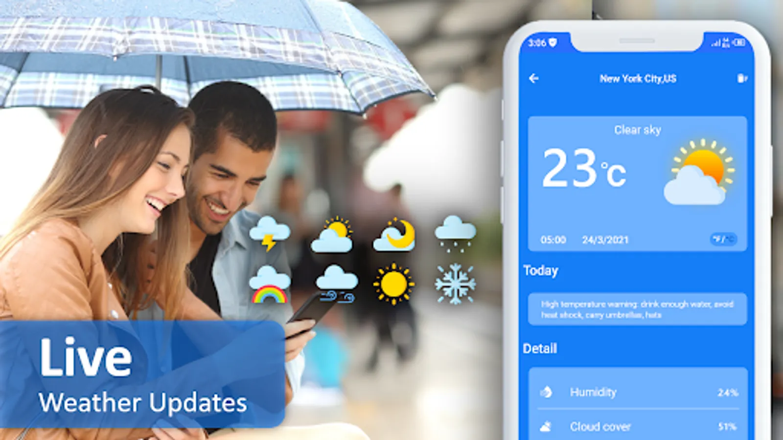 * Plan your day with a clear Weather Forecast