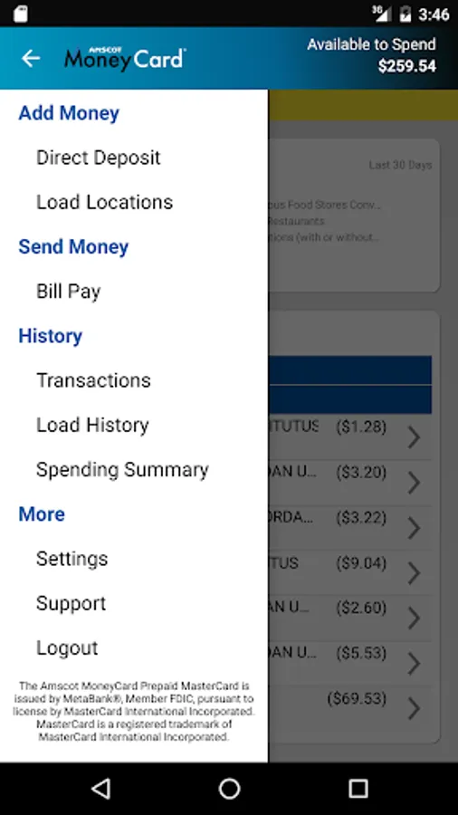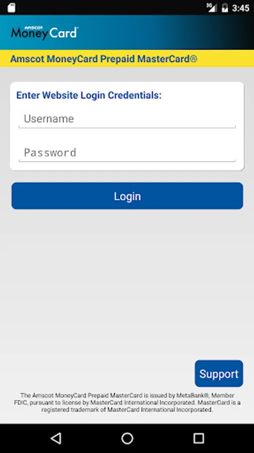The Amscot MoneyCard Prepaid MasterCard is issued by MetaBank®, Member FDIC, pursuant to license by MasterCard International Incorporated. MasterCard is a registered trademark of MasterCard International Incorporated.