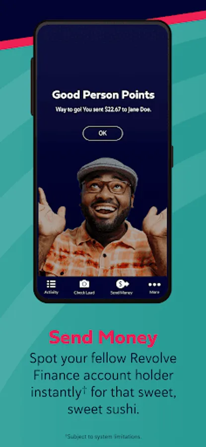 Pitch in for your share of the bill in a snap! It’s quick and easy to transfer money to any other Revolve Finance accountholder. This is a third party service subject to third party service terms and conditions.
