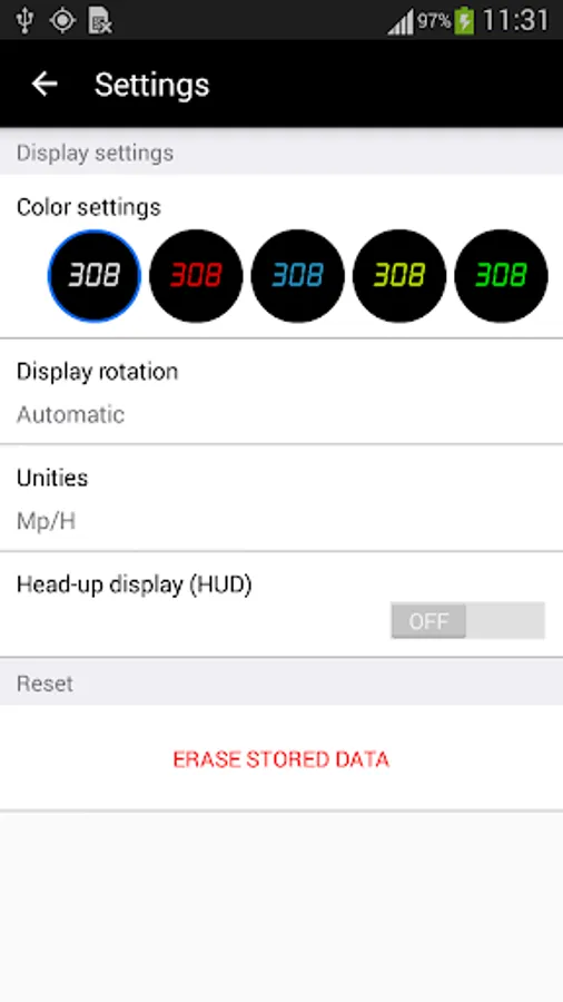 which displays the current GPS speed on a digital speedometer with the total kilometers or miles.