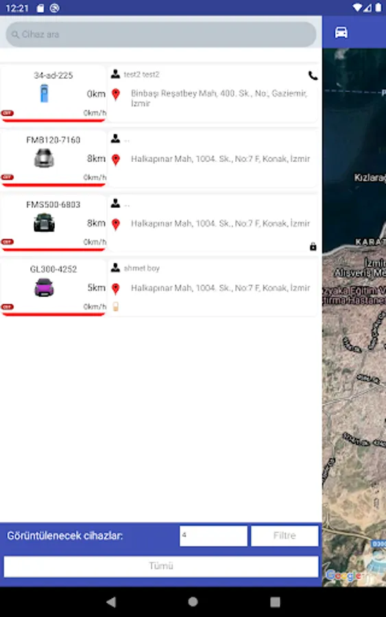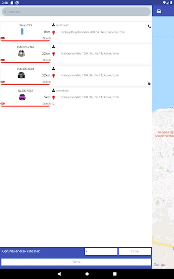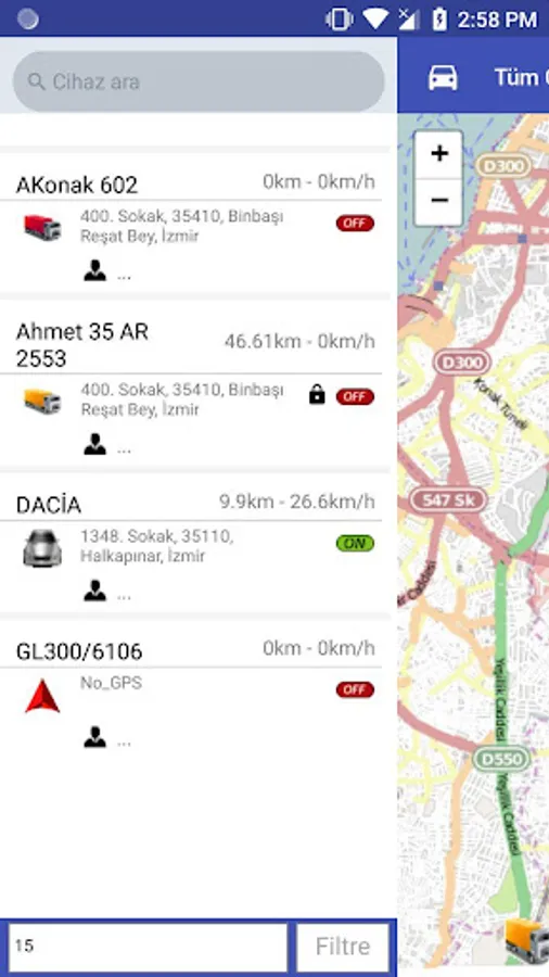 - Allows users to view all their vehicles on the map.
