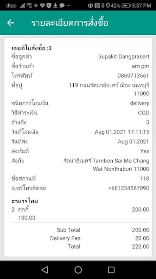 This application will be responsible for contacting the food delivery staff. There is a navigation system through Google Maps. There is a system for calculating distance payments through an application that is set by the CMFOOD administrator or the store owner. CMFOOD Merchant Food delivery staff are responsible for opening the application to wait for orders from the store owner. Deliver food courteously and on time while collecting food and food delivery fees from customers. This application can take photos or record food delivery messages from customers.