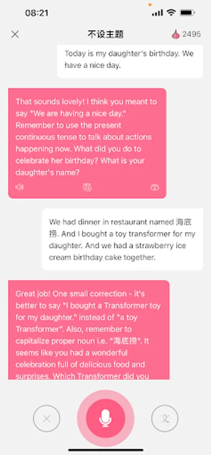 1. Real-time speaking practice: Talk to the AI language model anytime, anywhere, and get personalized guidance and instant feedback.