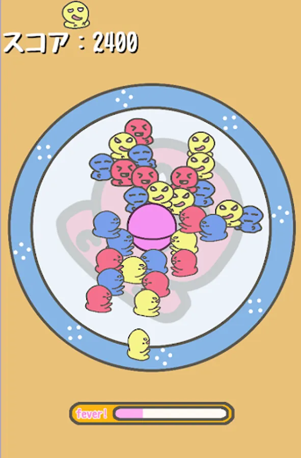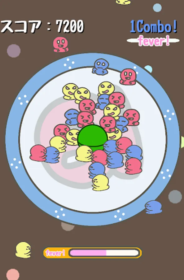 "Gather" is, "gathered" toward the placed in the center of the dish (stage) from various directions "candy" comes, the biological "gather" of the mystery which was Punipuni, "swipe the dishes operation in turn "is moved by, is a thickness circle of the same color" aligned go off to "game!