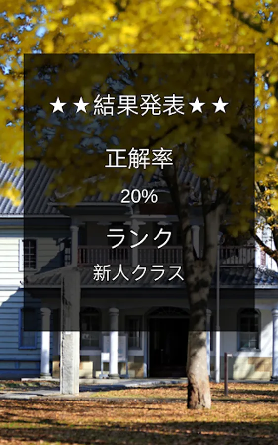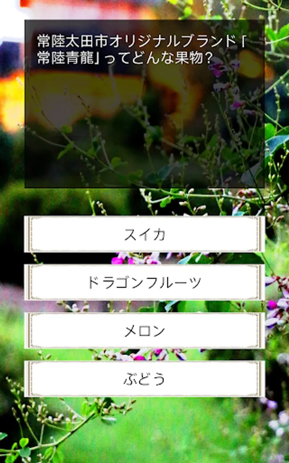 An application that displays 10 questions related to Ibaraki Prefecture, which are given randomly, and displays the correct answer rate and rank. 10 questions will give you results so you can play easily, and if you only ask about issues related to Ibaraki Prefecture, I hope that you will become more familiar with Ibaraki Prefecture.