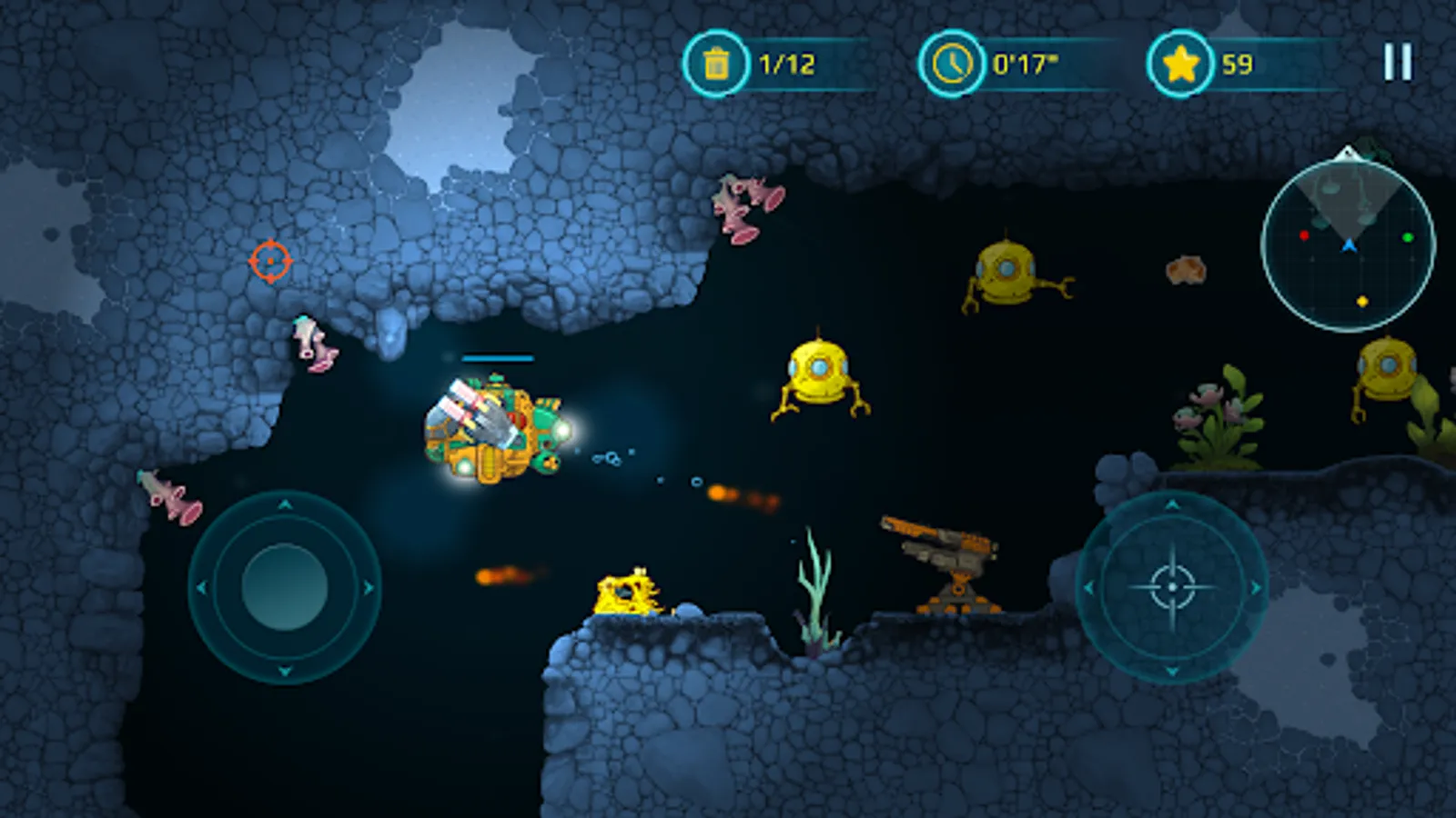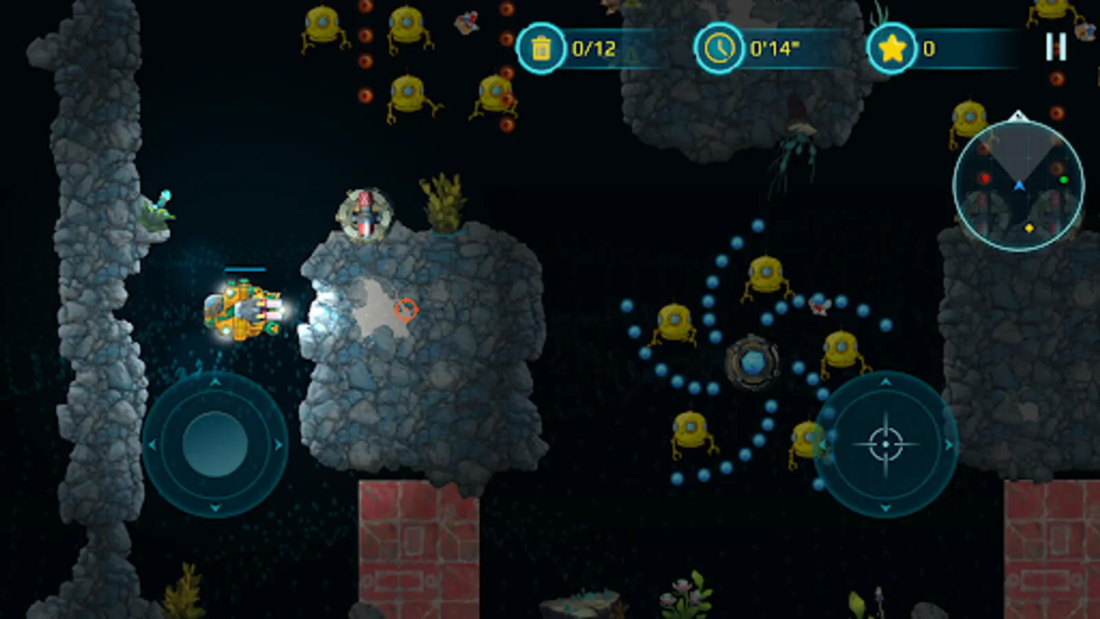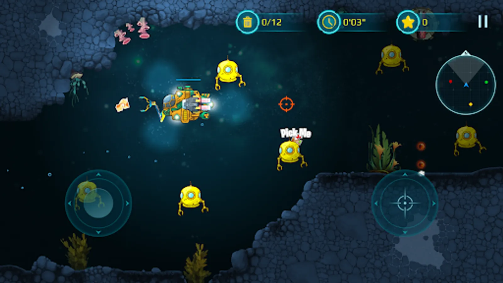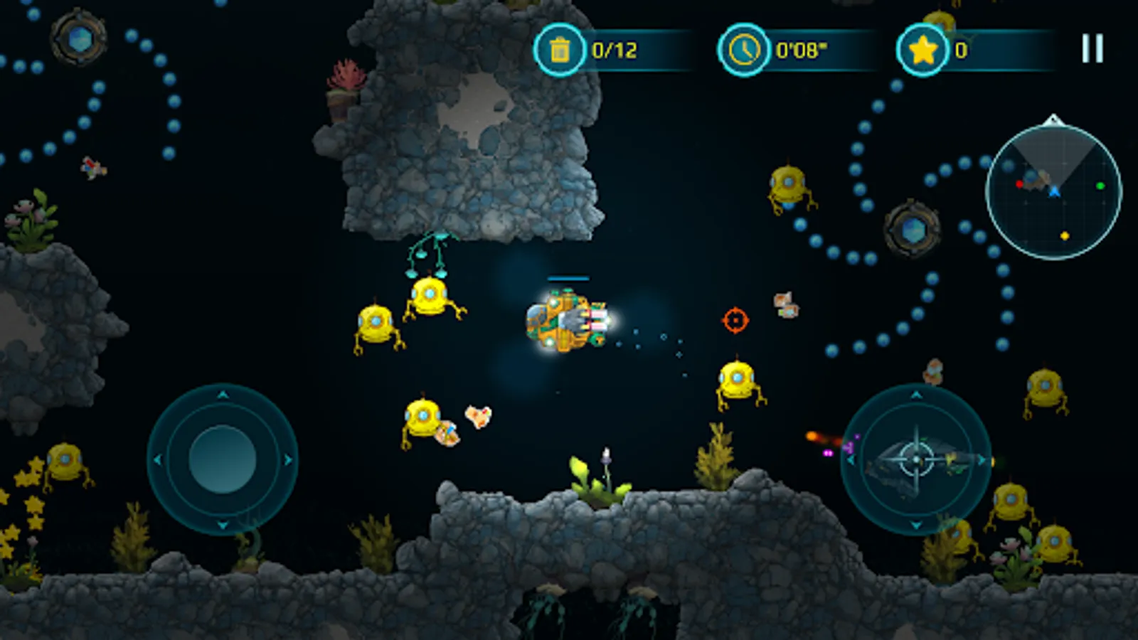With a bright yellow submarine at your command, you'll venture deep into underwater caves and explore the mysteries of the ocean. Take on enemy creatures and defend yourself with powerful weapons, carefully avoiding the many hazards that lurk in the dark depths of the sea.