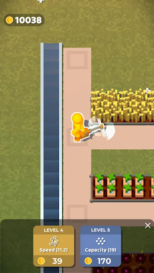 Upgrade your farmer and your crops, and even hire new farmers to help out!