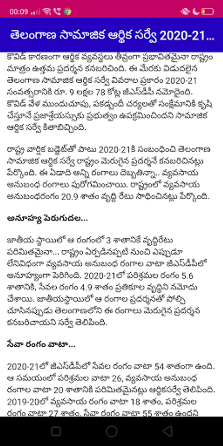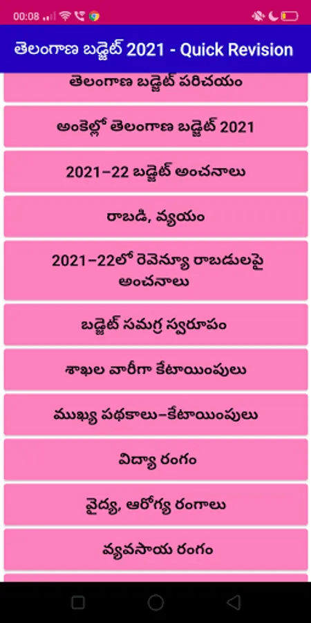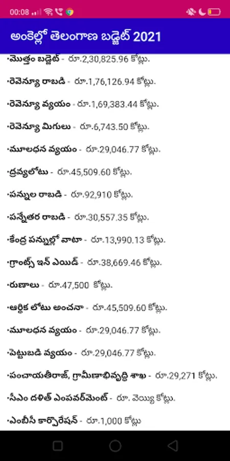 This app helps you in getting the basic idea of Telangana Budget 2021 in simple language, along with the numerical details, allocations to various schemes. Once you complete reading the budget, you surely will get enough confidence to appear for the Group 1, Group 2 and Group 2 exams conducted by the Telangana Government. Good luck :)