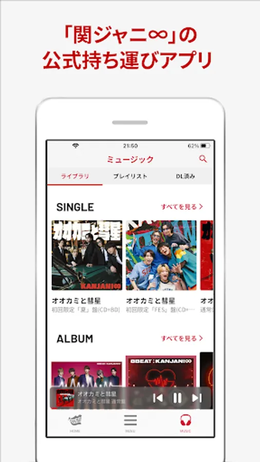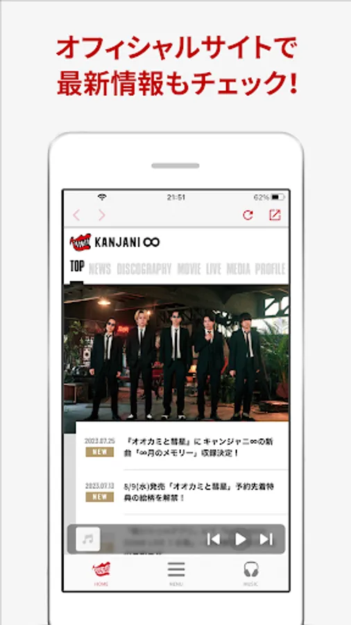Take Kanjani ∞ with you anytime and anywhere with the Kanjani ∞ app, which allows you to enjoy purchased CDs and Blu-rays/DVDs on your smartphone or tablet!